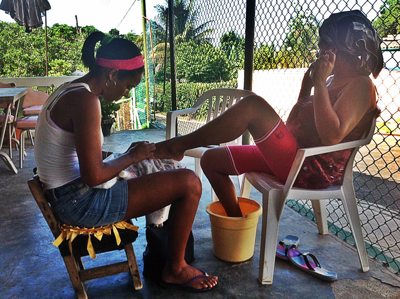 On s’installe sur la terrasse, on essaie de capter le peu d’air frais qui passe par moment, et tout en discutant de choses de filles, on entreprend de se faire belle avec beaucoup de sérieux. La beauté à Cuba c’est très important, on aime plaire et puis c’est aussi une question de courtoisie. C’est la culture cubaine.
