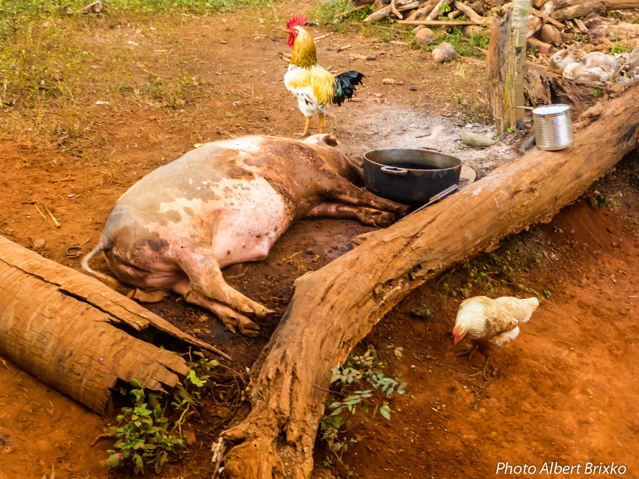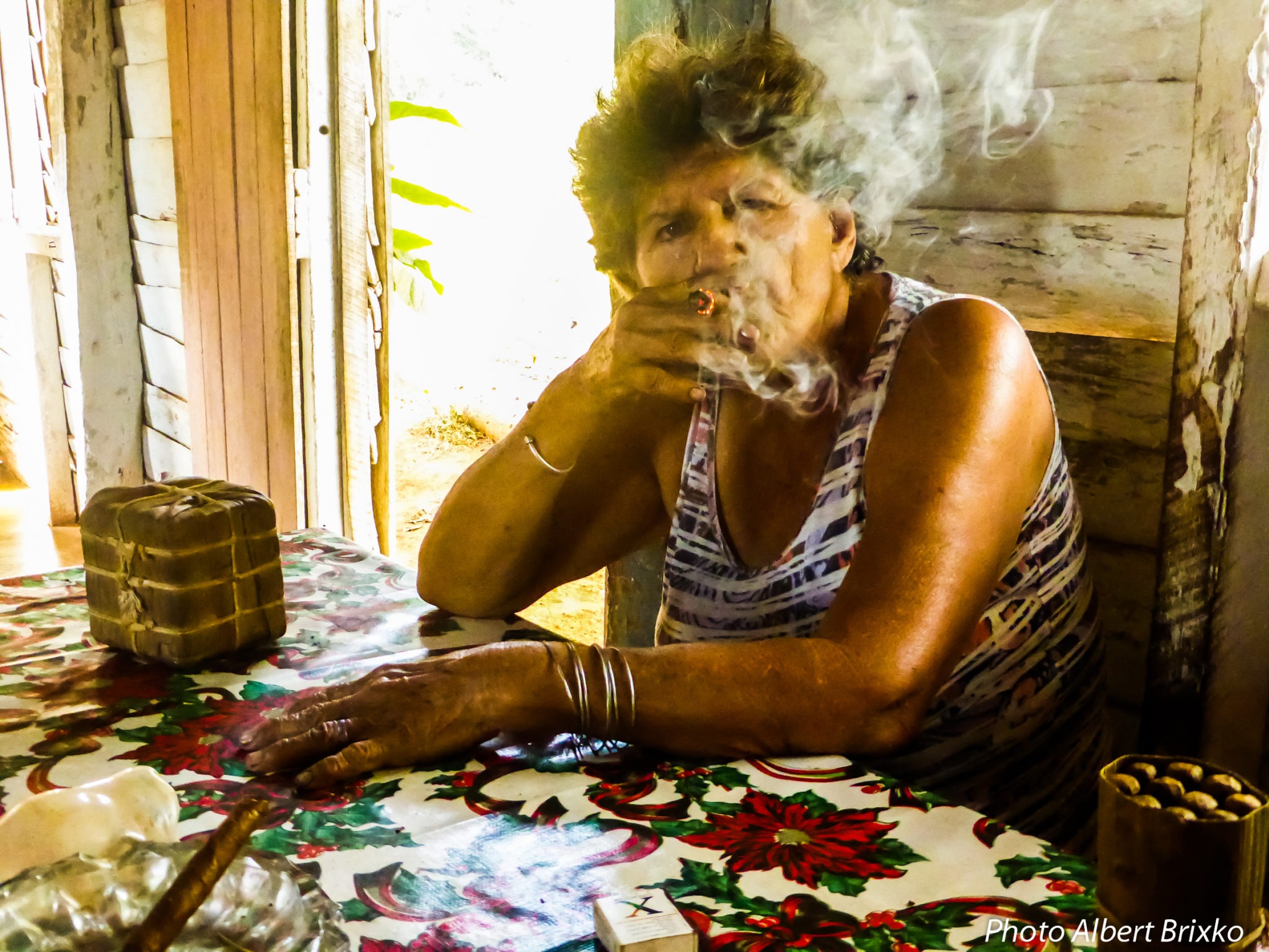 Nous quittons bien à regret ces sympathiques personnes pour continuer notre découverte des lieux et sommes à nouveau bientôt interpellés par une dame qui nous propose de prendre un café chez elle… Elle aussi fume le cigare ! Et la fumée ne semble pas incommoder le cochon qui dort à deux pas de la porte de la cuisine !