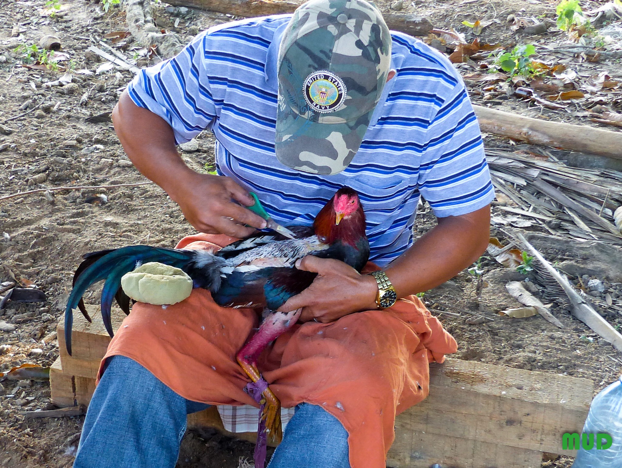 Celle-ci débute par une « balade organisée », au départ du musée municipal… Notre guide Danny parle (très bien !) le français et ne manque pas d’humour… Au cours d’un périple de 4 heures, nous parcourons la campagne, de mogote en champ de tabac, de culture de haricots à une autre mogote… Danny attire notre attention sur le héron garde bœuf ou sur un vieil arbre creux, siège d’offrandes par des adeptes de la « Santeria », religion afro-cubaine assimilable au vaudou… Incidemment, notre route croise une ferme où des guajiros préparent leurs coqs au combat ; nous verrons ces pauvres volatiles trembler de peur tandis qu’ils se font épiler, avant de devenir d’agressifs « guerriers ».