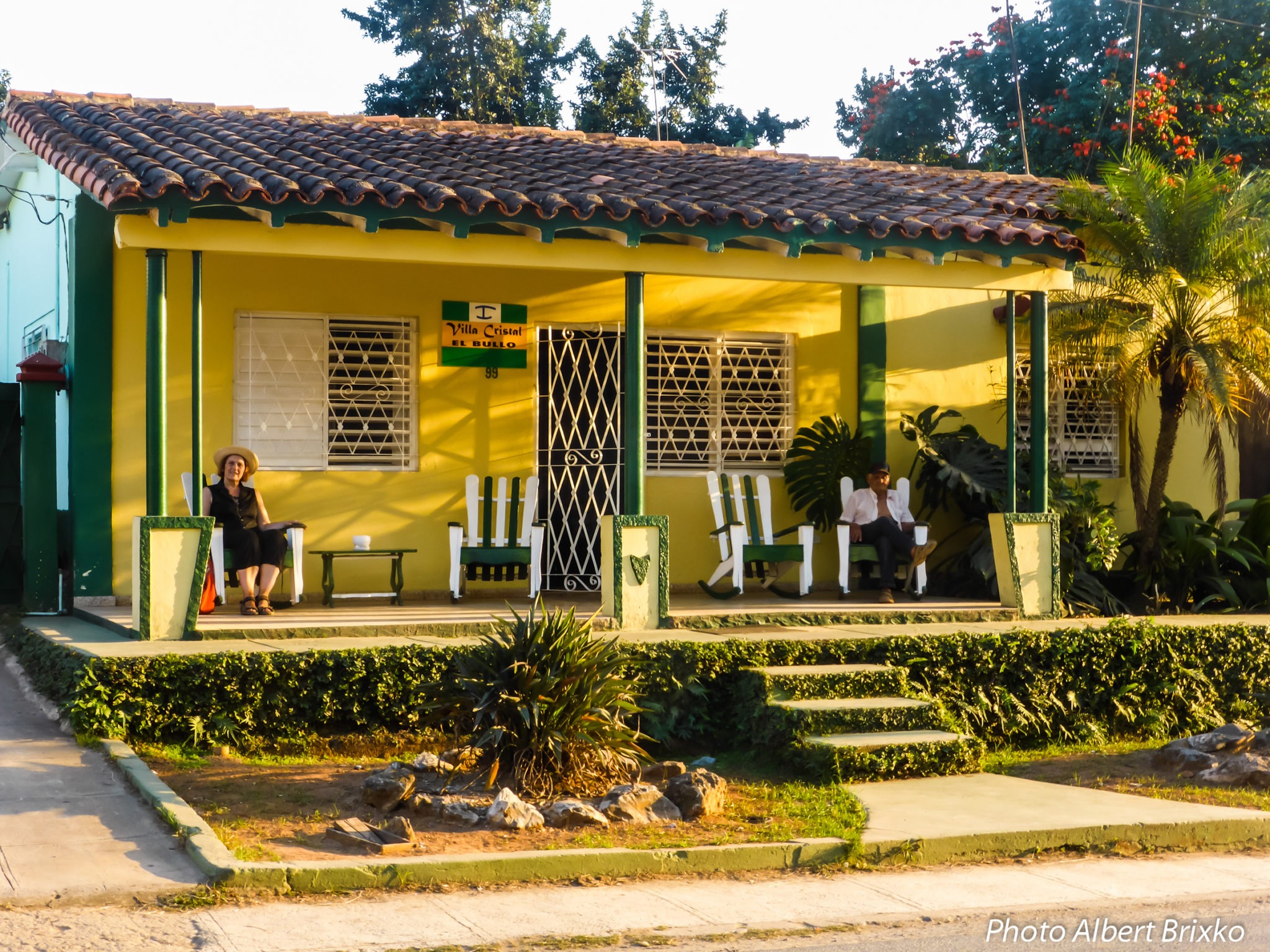 Nous arrivons à Viñales à midi et demi (bravo Viazul !). Le comité d’accueil est ici composé d’une vingtaine de personnes proposant des chambres à louer. Mais la nôtre nous est réservée depuis plusieurs mois déjà… Nous logeons à la « Villa Cristal », tenue par Anita et Francisco, bien aidés par la maman de ce dernier… Ils nous reçoivent avec un excellent jus de fruits frais que nous dégustons sans plus attendre.