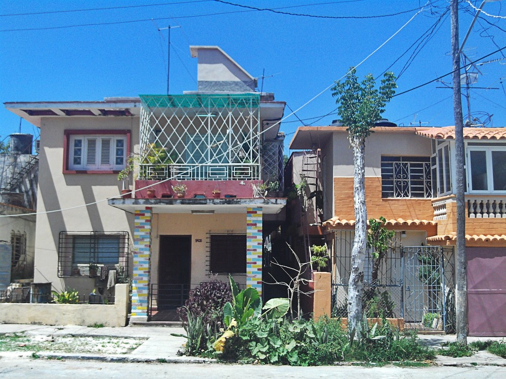 Ces grilles ornent les maisons, en même temps qu’elles assurent leur sécurité en laissant la possibilité de laisser l’air circuler pour en rafraîchir l’intérieur. Un peu comme si la maison était fermée et ouverte en même temps…un bonne amie française m’a dit un jour qu’elle aimait beaucoup cette habitude, parce que cela lui donnait le sentiment d’avoir un peu accès à l’intimité des Cubains, depuis la rue. D’ailleurs, ces grilles ont inspiré nombre de peintres cubains : Amelia Peláes, par exemple, en a fait l’un de éléments caractéristique de toute son œuvre. On trouve également de ces grilles dans les quartiers plus modernes, comme le Vedado ou encore dans des quartiers plus éloignés du centre, comme le mien.