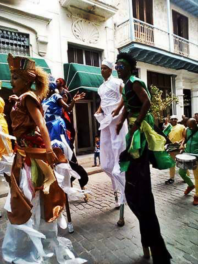 Personnellement, l’art que je préfère, c’est celui qu’on trouve dans les rues de la Vieille Havane. En déambulant dans ce quartier, on a de fortes chance de tomber sur quelque manifestation artistique : danse, musique, théâtre de rue voire même peinture, tous les arts se retrouvent là comme des habitants de plus. Les statues vivantes du collectif de Gigantería par exemple apportent leur touche personnelle aux rues les plus fréquentées; on croise également fréquemment les géants de ce collectif, qui dansent joyeusement sur leurs échasses au milieu des badauds curieux, accompagnés de rythmes carnavalesques, rencontre musicale de différentes cultures (principalement africaine et espagnole).