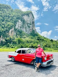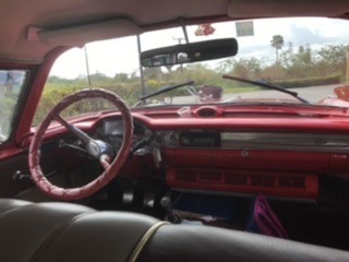 Son véhicule : Une Oldsmobile 1957, rouge et blanche, faisant l’admiration de nombreux touristes, appareil photo en bandoulière. Sa voiture doit être affichée dans une multitude d’albums photos du monde entier. Il est vrai que Daniel en prend très soin et que tous les matins, la voiture était nettoyée et astiquée pour se présenter à nous rutilante. Spacieuse ( nous étions 4 et même pas serrés ) et « presque » confortable malgré les nids de poule, nous avons parcouru les routes cubaines en toute sécurité pendant 12 jours. Daniel, son chauffeur est un des artisans majeurs de la réussite de notre périple cubain : Ponctuel, discret et à la fois très loquace pour nous expliquer dans les détails les coutumes locales, gentil, avenant, et toujours à notre écoute. Nous avons découvert avec lui un pan de la culture cubaine et des gens que nous n’aurions sans doute jamais rencontrés. Parler l’espagnol (et le comprendre) est sans doute un plus pour voyager avec lui tellement il est authentique, vrai et désireux de partager un monde encore préservé du tourisme de masse. Une très belle rencontre que nous recommandons vivement à toute personne hésitant, comme nous l’avons longtemps fait, entre une voiture de location et une voiture avec chauffeur. Nous revenons conquis et prêts à repartir…. avec Daniel …pour découvrir de nouvelles facettes d’un pays que nous ne sommes pas prêt d’oublier.